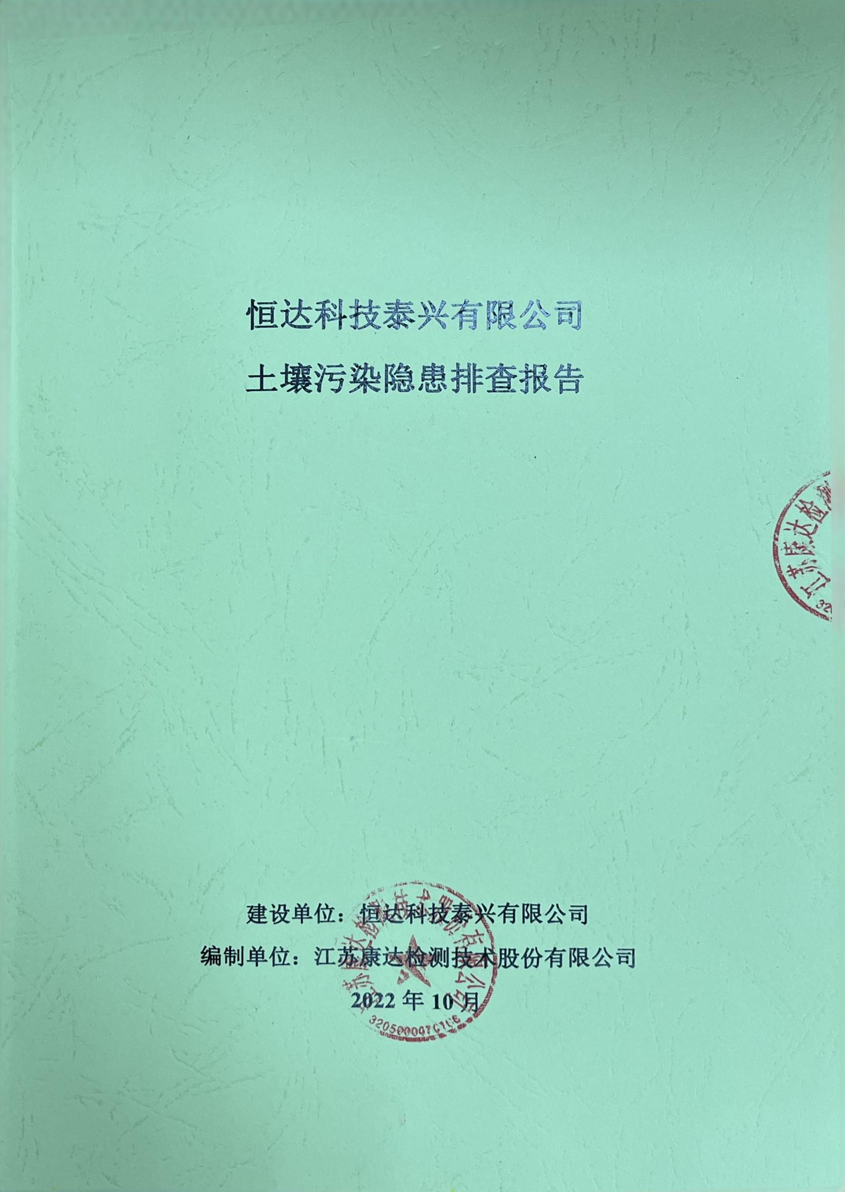 恒達(dá)科技泰興有限公司土壤污染隱患排查報告