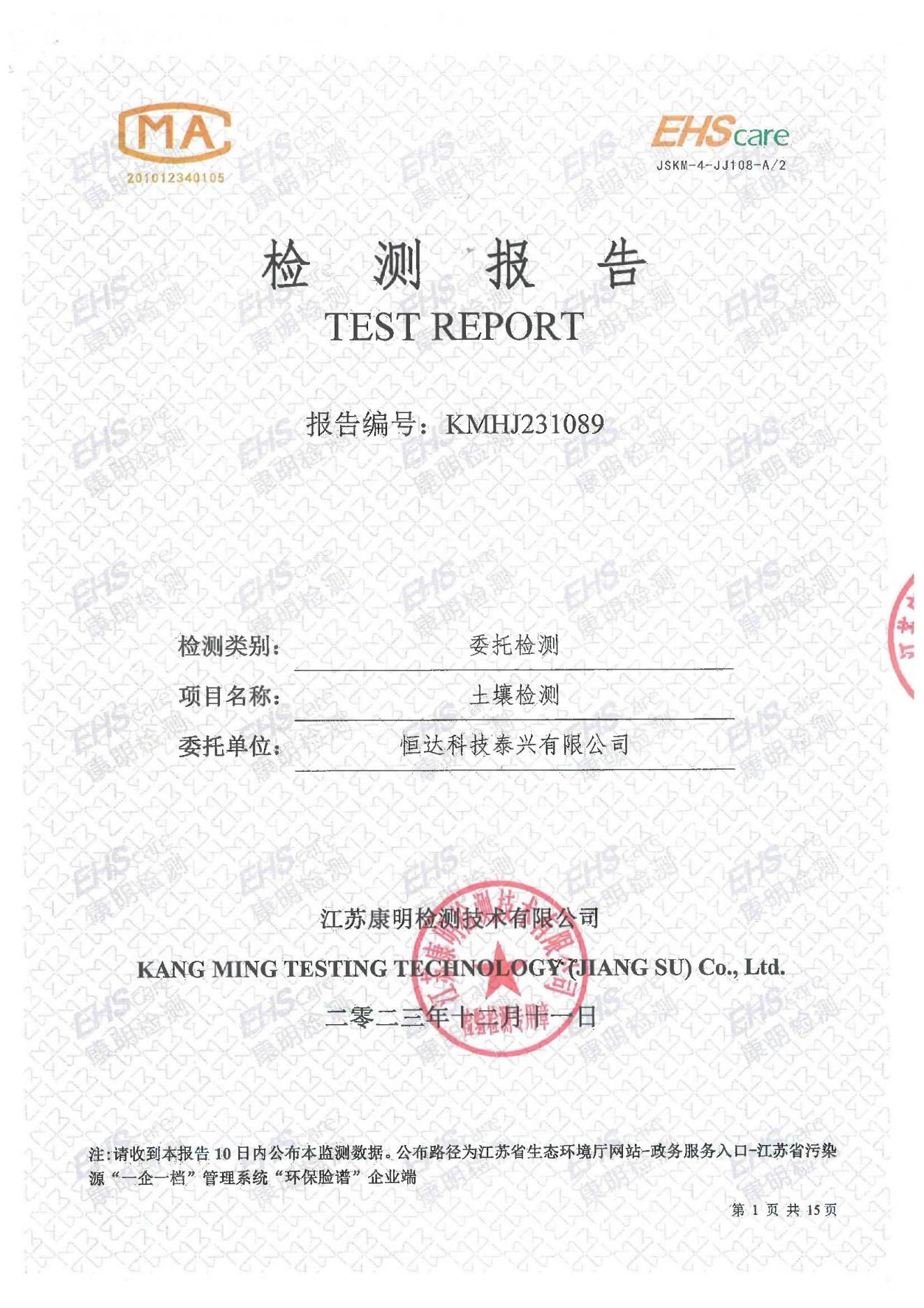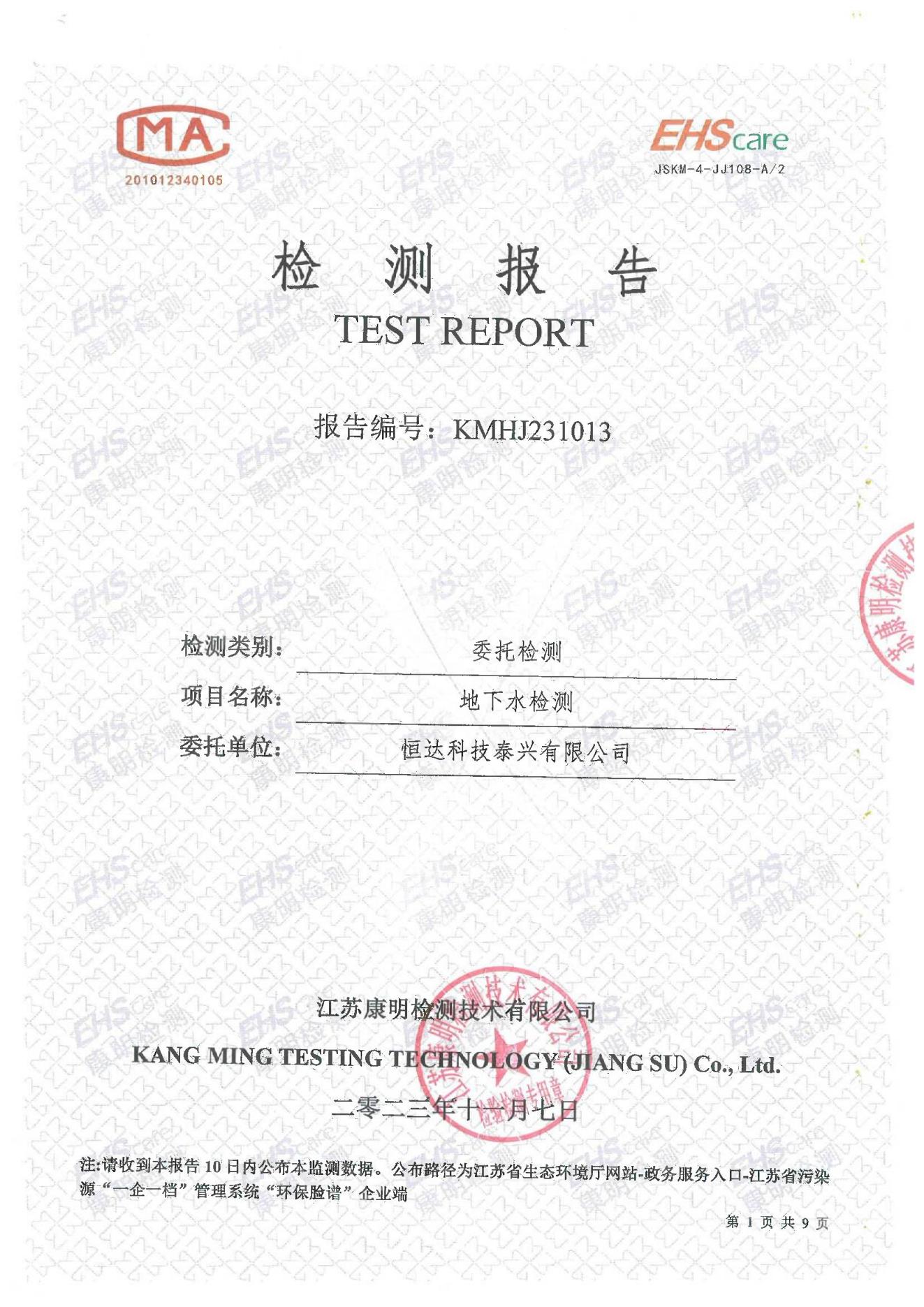 恒達(dá)科技泰興有限公司-地下水、土壤檢測報告