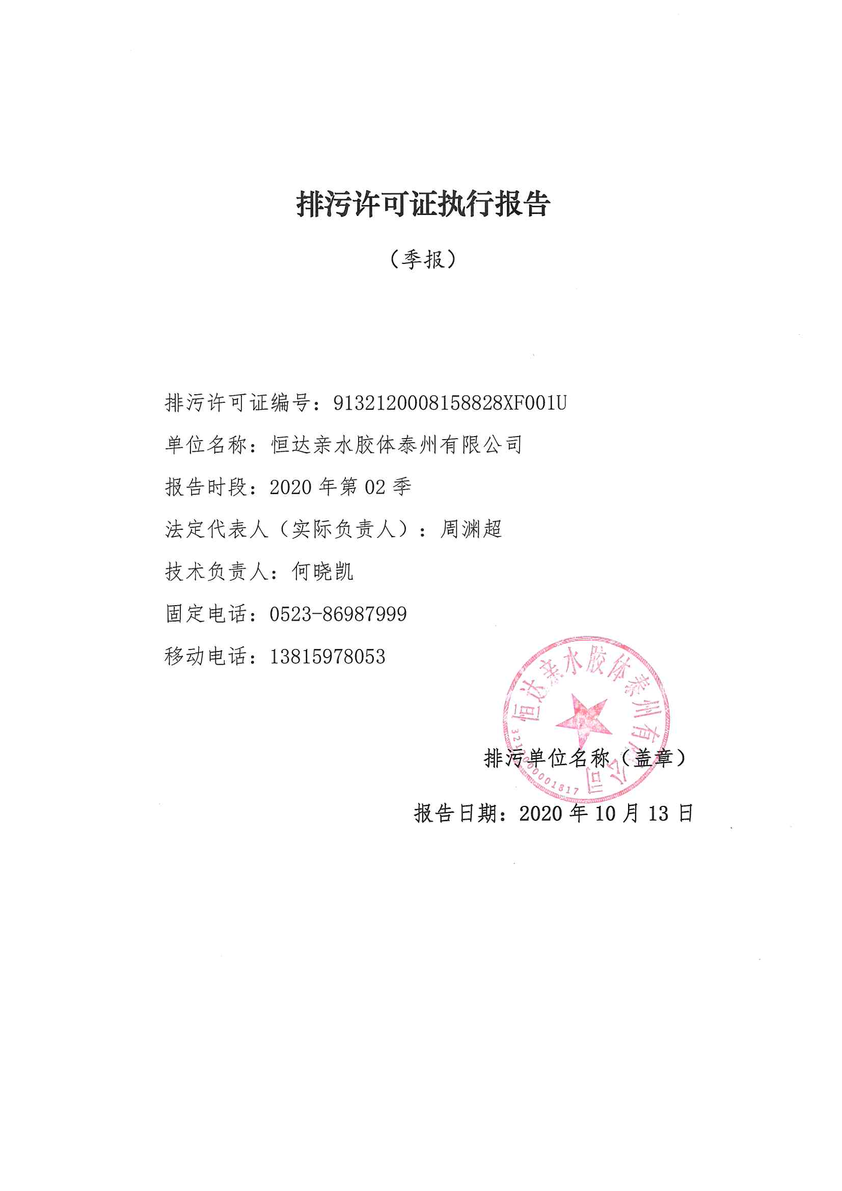 恒達科技泰興有限公司-2022年排污許可證第二季度執(zhí)行報告