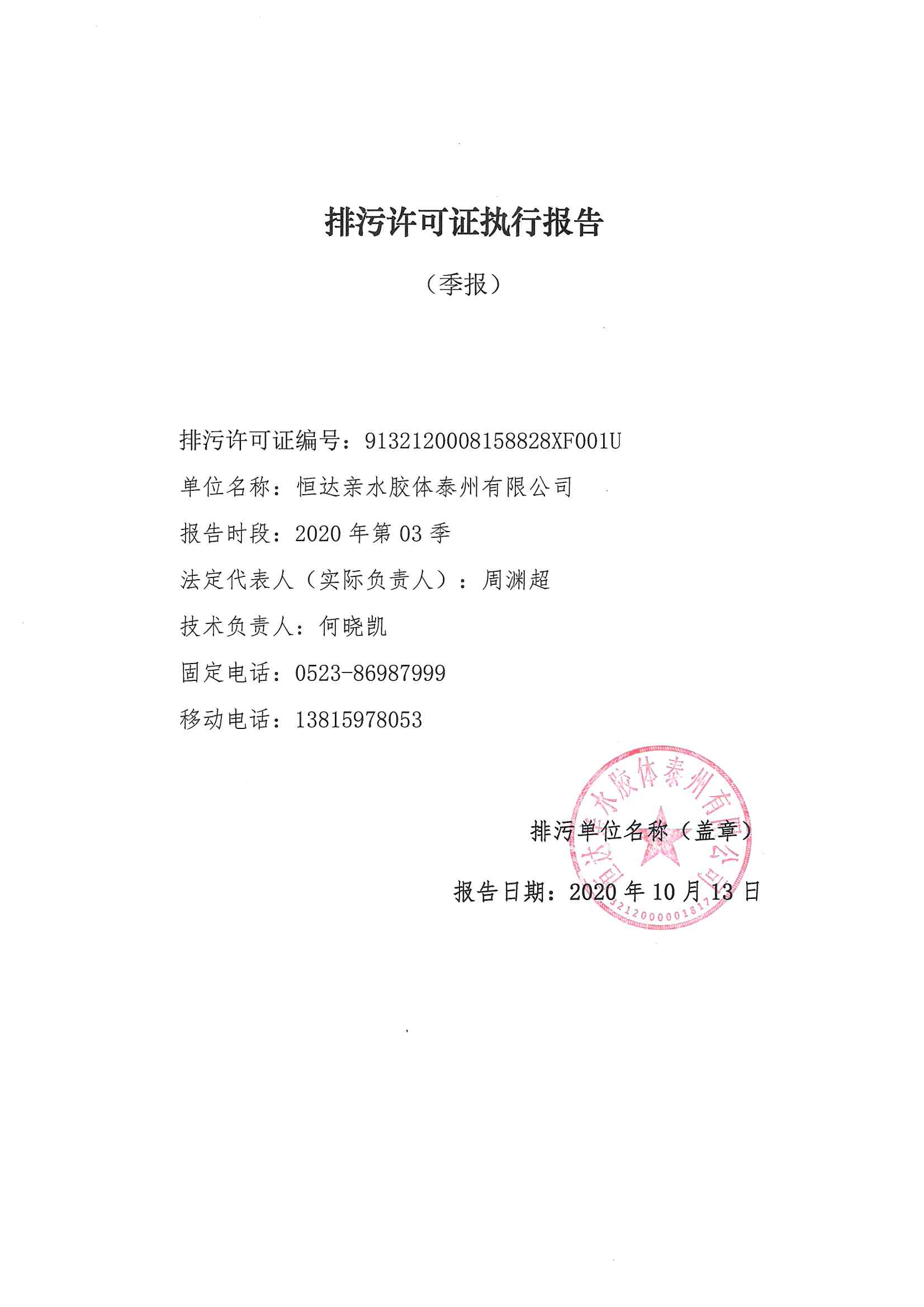 恒達科技泰興有限公司-2022年排污許可證第三季度執(zhí)行報告