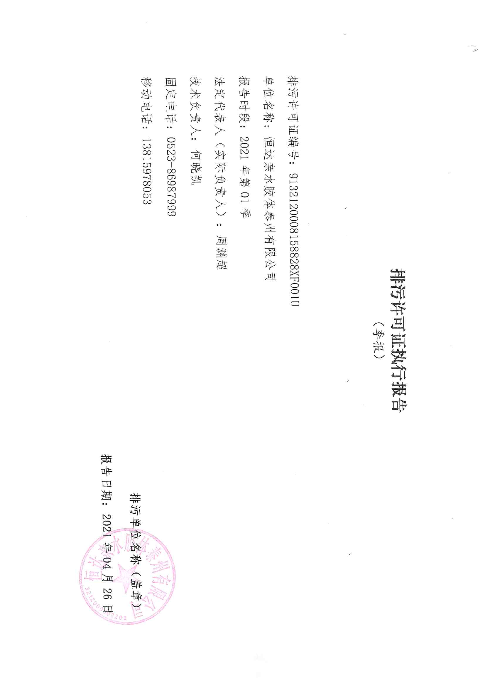 恒達科技泰興有限公司-2021年排污許可證執(zhí)行報告